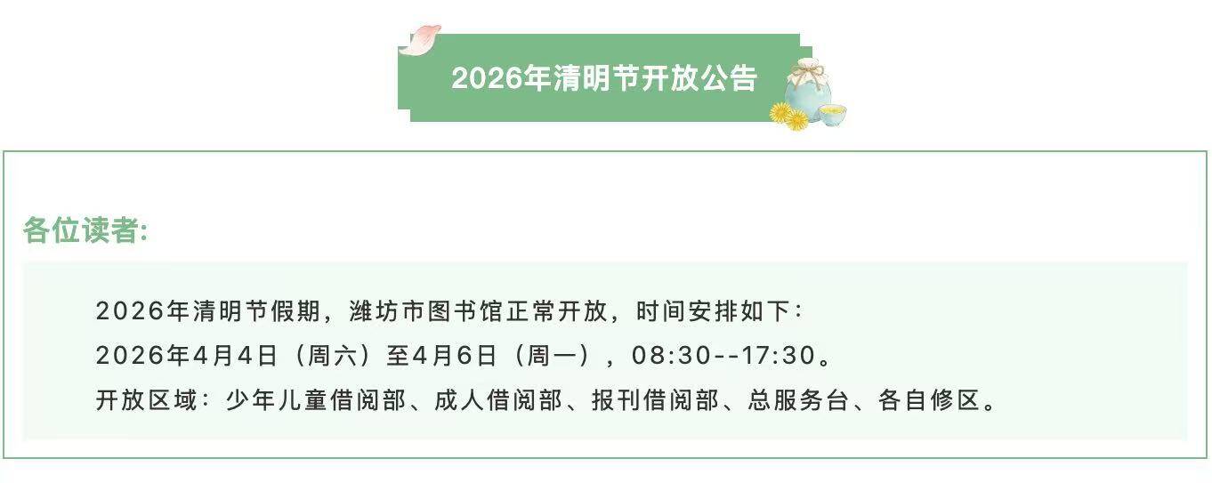 濰坊市圖書館2026年清明節(jié)開放公告