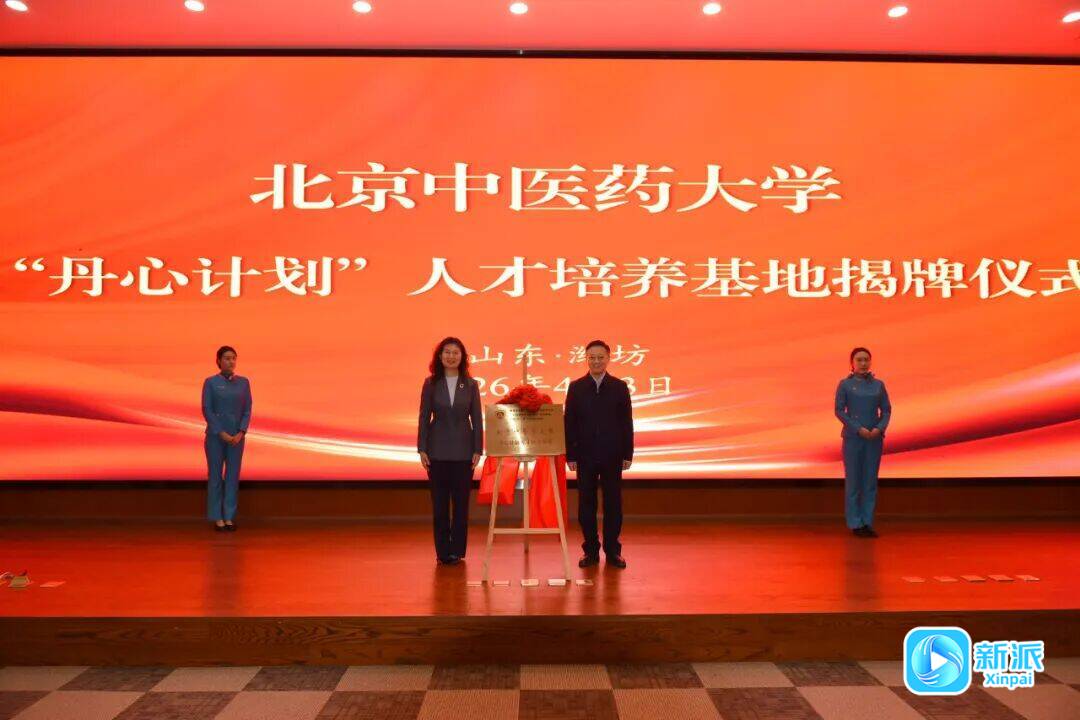 北京中醫(yī)藥大學(xué)副校長(zhǎng)丁霞與濰坊市衛(wèi)健委黨組成員、濰坊市中醫(yī)院黨委書記王冰共同為“丹心計(jì)劃”人才培養(yǎng)基地揭牌。