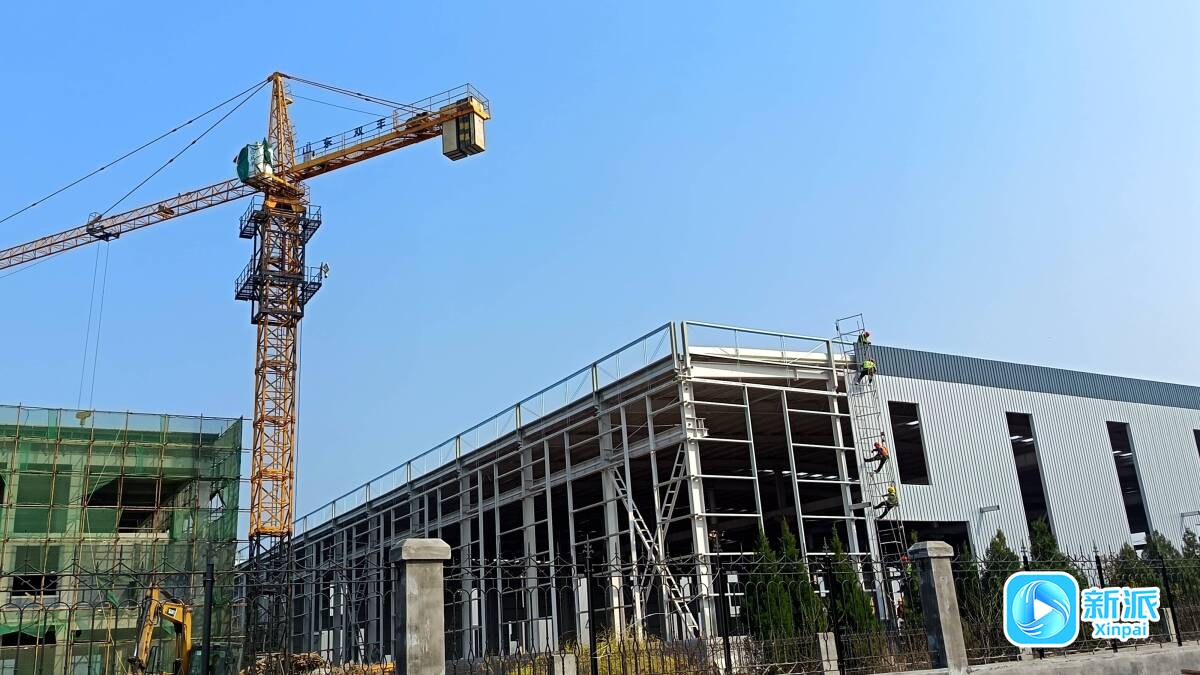 在山東匯通達機械制造有限公司二期項目建設(shè)現(xiàn)場,多臺吊車協(xié)同配合,數(shù)十名工人緊張作業(yè),有序開展鋼結(jié)構(gòu)安裝、外墻抹灰等工序。