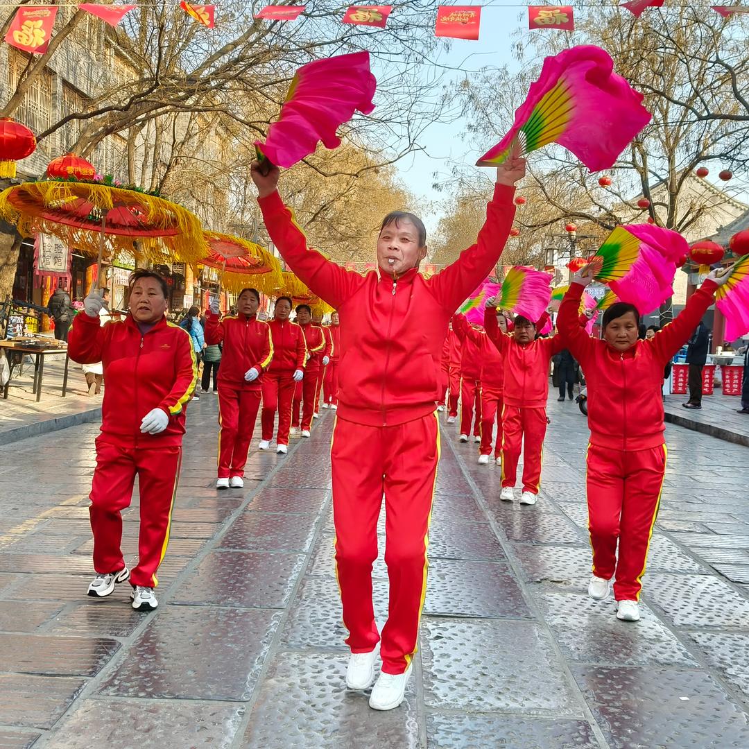 2月19日,農(nóng)歷正月初三,上午九時,濰坊青州古城里已是人潮涌動。云門山街道十字村鑼鼓秧歌隊(duì)的隊(duì)員們踏著歡快的節(jié)奏扭起秧歌,引來游客圍觀拍照。舞龍隊(duì)伍穿梭于街巷之間,彩龍翻飛,靈動炫目。而“老漢背媳”的民俗表演,則以詼諧幽默的動作引得眾人笑聲不斷。